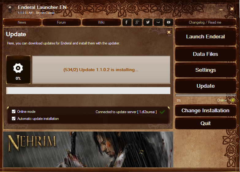 EDIT: it's been fixed, just go to Skyrim/Enderallauncher/update and delete all the ZIP files inside