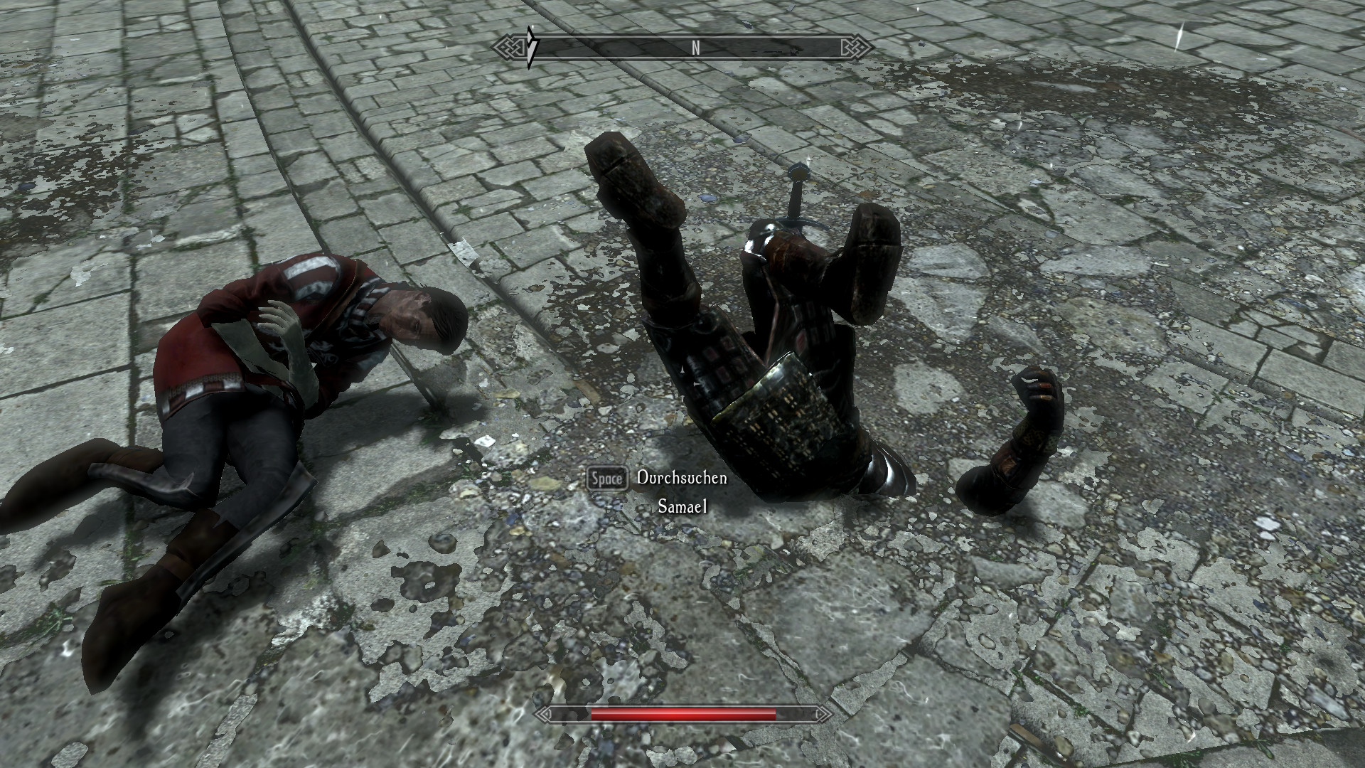 aber für uns muss vernünftige Rüstung schon sein, auch wenn er ohnehin sofort umfällt,